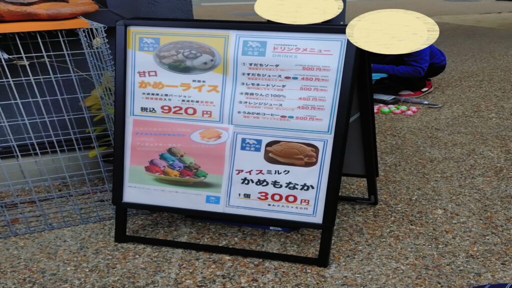 屋外エリアには飲食ブースもあり、ウミガメをもじった飲食物も売っていたりします。