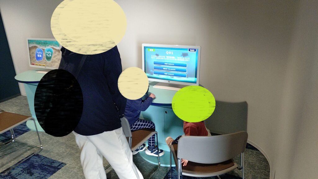 余談ですが、子供たちは最初こそクイズを試みてましたが、次第に本来の用途ではなく、ボタンを押すと色々画面が切り替わる玩具として楽しんでおりました。(待ち人がいなくて助かりました😌)