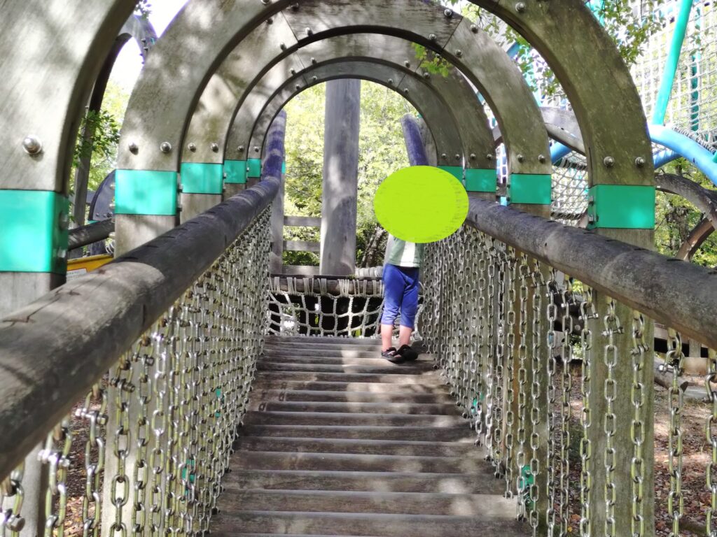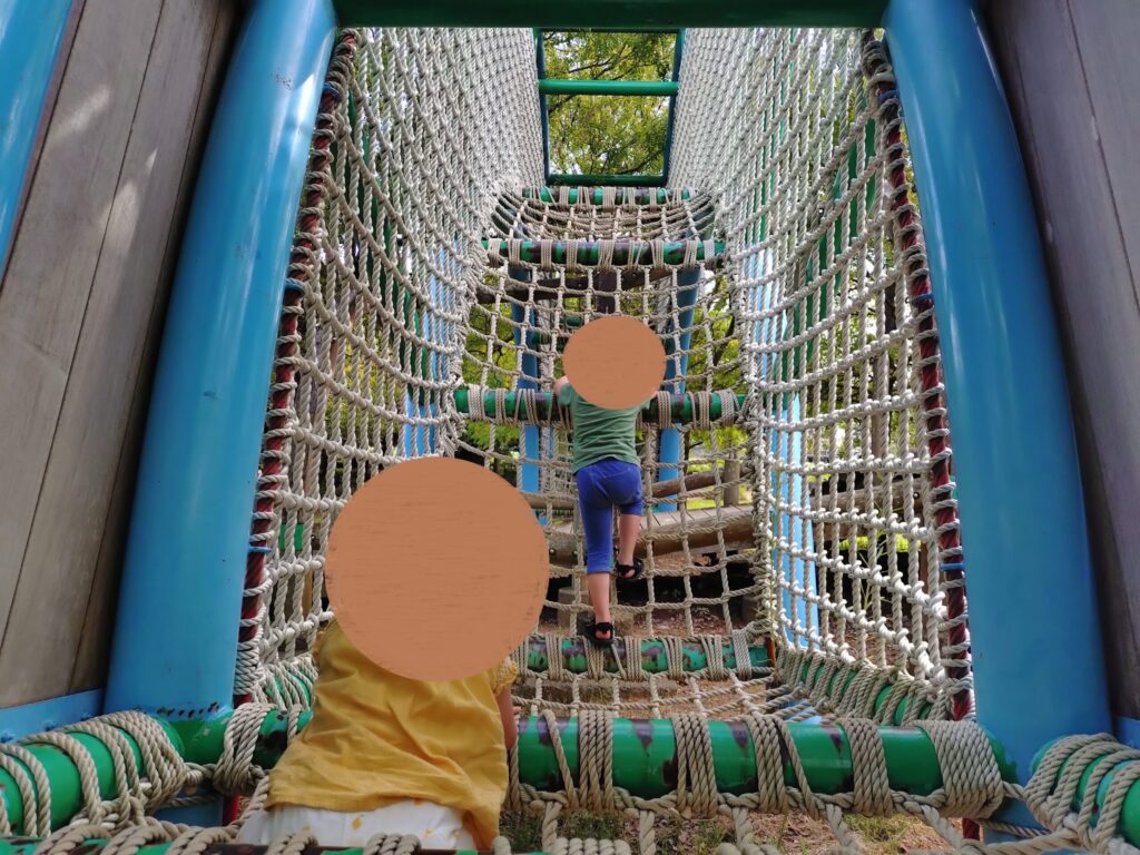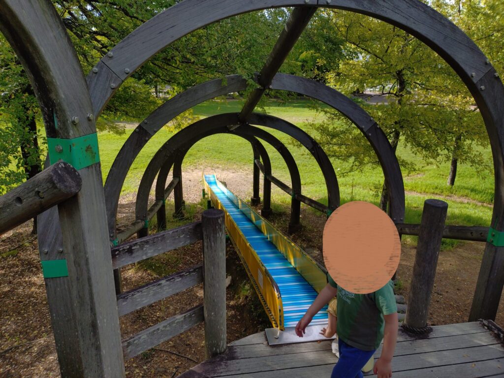 滑り口へ到達するまでのルートが網であったり、揺れる丸太橋であったり、いろんな楽しみ方ができます。(もちろん階段的に登れるところもあります。)