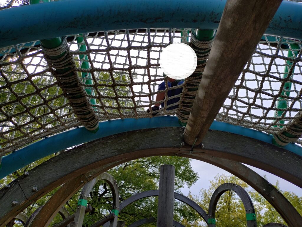 網は滑り台をアーチ状に囲んでいるものもあり、息子は上に登っては「お~い!」と